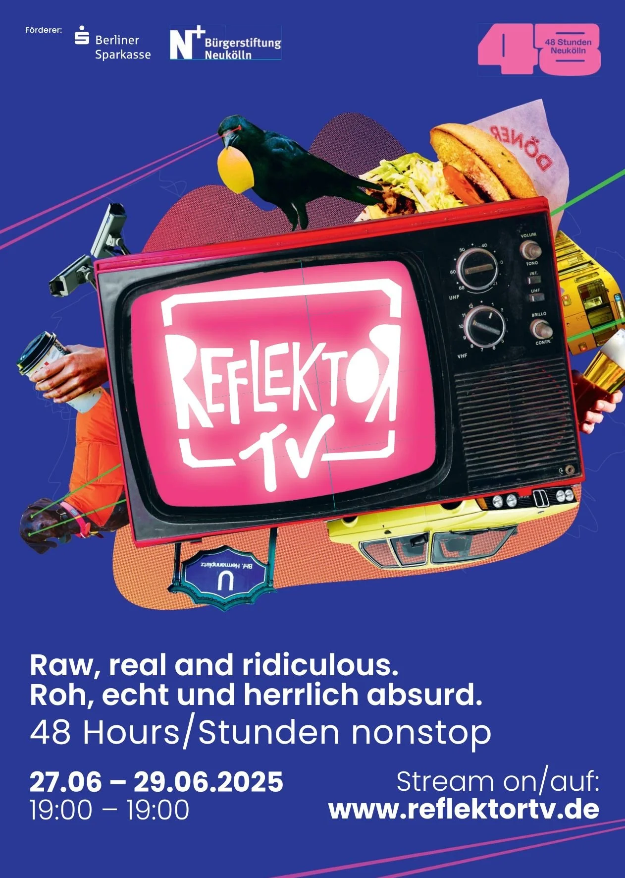 ReflektorTV ist ein 48-stündiger Stream mit Community-Journalismus, Satire und surrealen Nachrichten – gemacht von und für Neukölln. Inspiriert vom Festivalthema „What the Fact? – Zwischen Wahrheit und Wahrnehmung“ vereint das Programm echte Reportagen, Performances und Fiktion.